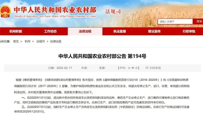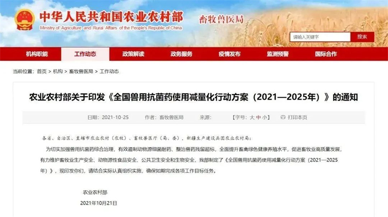 為了遏制微生物耐藥,自1986年開始,世界各國(guó)陸續(xù)在動(dòng)物飼料和養(yǎng)殖生產(chǎn)中實(shí)行禁抗、減抗政策。我國(guó)農(nóng)業(yè)農(nóng)村部發(fā)布第194號(hào)公告:自2020年7月1日起,飼料生產(chǎn)企業(yè)停止生產(chǎn)含有促生長(zhǎng)類藥物飼料添加劑(中藥類除外)的商品飼料。并于2021年制定了《全國(guó)獸用抗菌藥使用減量化行動(dòng)方案(2021—2025年)》,行動(dòng)方案指出:到2025年末,50%以上的規(guī)模養(yǎng)殖場(chǎng)實(shí)施養(yǎng)殖減抗。